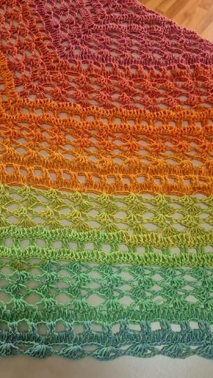 Die Anleitung zum Tuch besteht aus schriftlich ausformulierten Reihen und beinhaltet eine Häkelschrift.