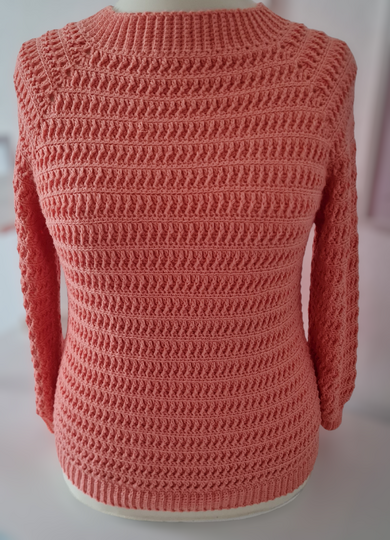 Der Pullover kann mit jeder beliebigen Wolle und der dazu passenden Häkelnadel anfertigt werden.