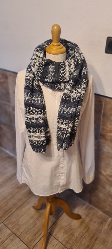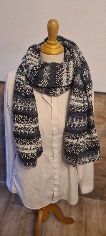 Ich habe für meinen Schal ein 100% Polyacryl Garn genommen.gehäklt habe ich den Schal mit Nadelstärke 4