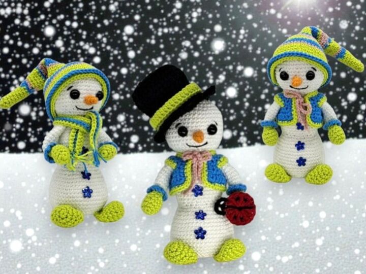 Diese Häkelanleitung für den zauberhaften Schneemann enthält mehrere Teile an Bekleidung. Du kannst ihn damit vielseitig verwandeln.