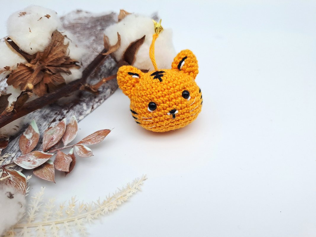 Bring Mut, Stärke und eine Portion Niedlichkeit in deinen Alltag – mit diesem liebevoll gehäkelten Tigerkopf-Schlüsselanhänger.