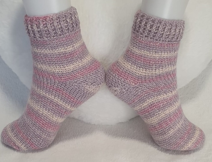 Mit dieser Häkelanleitung können diese Socken in allen Größen - von Neugeborenem bis Größe 48 - nachgearbeitet werden