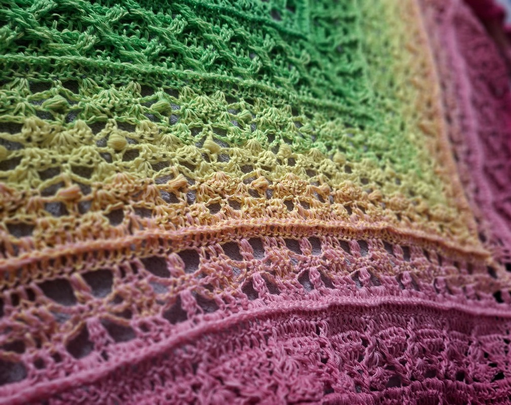 Diese Anleitung für ein gehäkeltes Dreieckstuch im wundervollen Mustermix enthält in allen Teilen genaue Häkelschriften, Fotos für die einzelnen Muster und natürlich Maschenerklärungen für die etwas kniffligeren Maschen und die verwendeten Zöpfe.