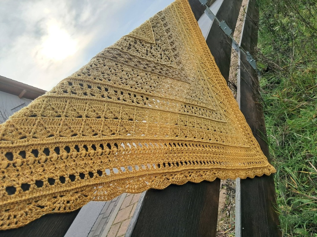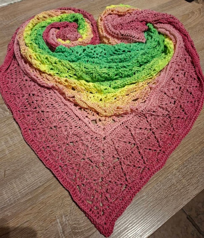 Und im übrigen es macht mir sehr viel Spaß das Tuch zu Häkeln.