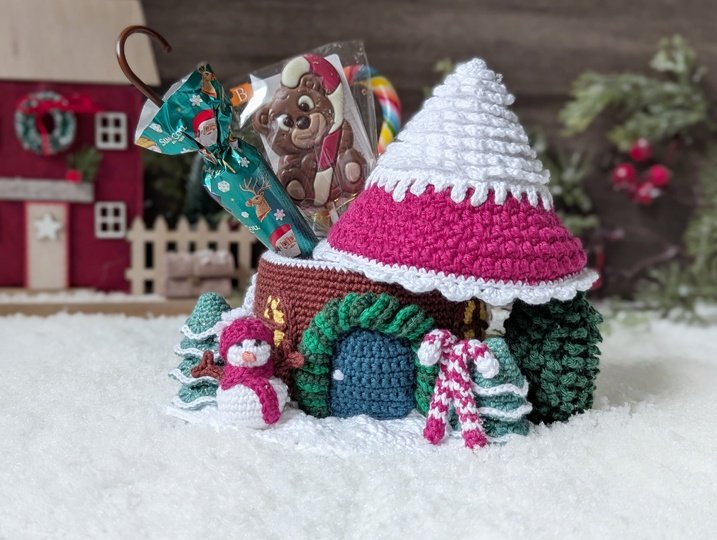 Häkle dein eigenes verschneites Weihnachts- oder Adventshäuschen mit dieser digitalen Häkelanleitung!