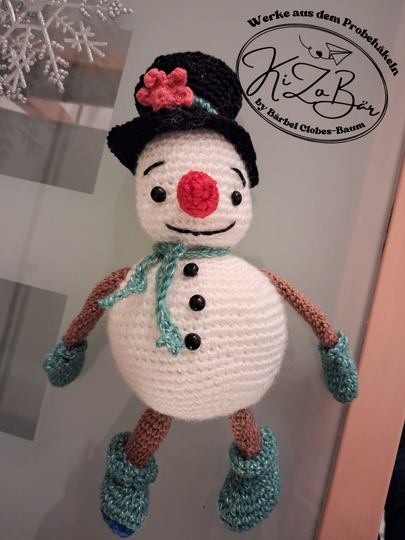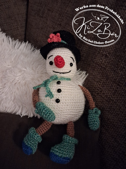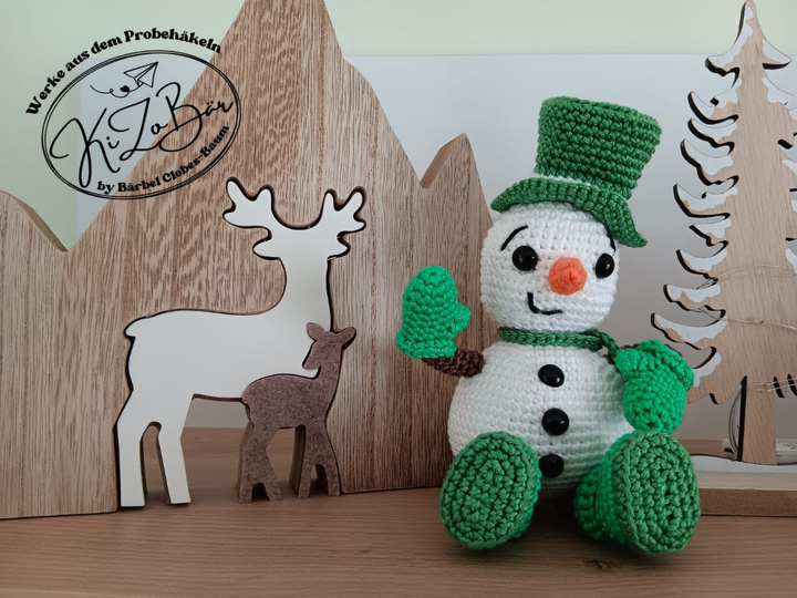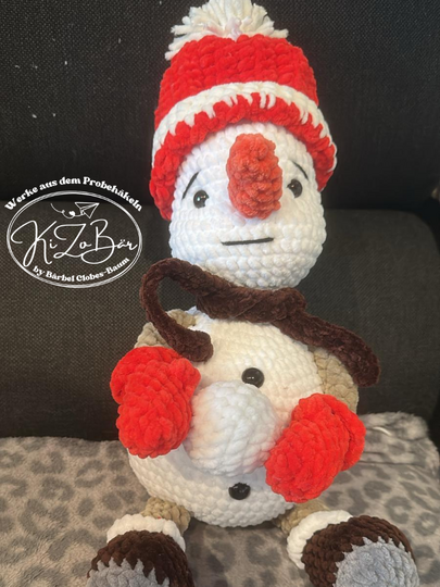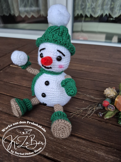 Dies ist kein fertiges Produkt, sondern eine Anleitung zum Nachhäkeln eines vielseitigen Schneemanns. Iceander kann ganz frech mit Bommelmütze und Schneeball zu einer Schneeballschlacht einladen oder ganz elegant mit Zylinder und Gehstock daher kommen. Durch den eingearbeiteten Basteldraht sind Arme und Beine biegsam, so dass Iceander den Schneeball werfen kann, winken kann oder sich den Mund oder Bauch vor lachen halten kann...