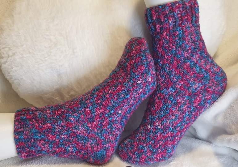 Bei Verwendung von beliebigem Garn mit unterschiedlichster Nadelstärke erkläre ich Dir, wie die einfache Berechnung und Anpassung erfolgt - sodass es mit dieser Anleitung viele verschiedene Möglichkeiten gibt, Deine Lieblingssocken zu häkeln und Generationen jeden Alters mit hübschen und passenden Socken zu beschenken.