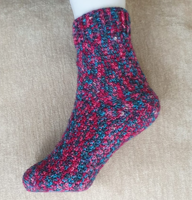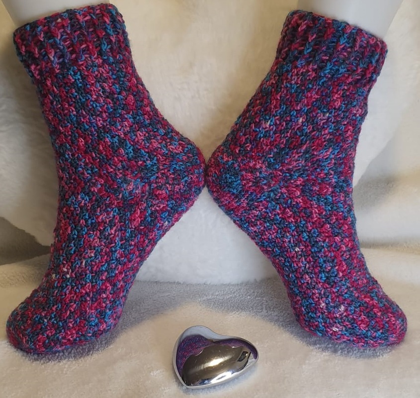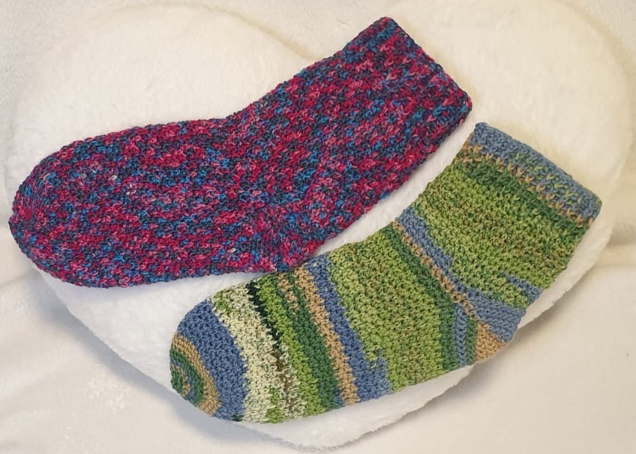 Mit dieser Häkelanleitung können diese Socken in allen Größen - von Neugeborenem bis Größe 48 - nachgearbeitet werden