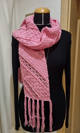 4x Baumwollgarn 8/4 170m/50g Farbe rosa mit Nadelstärke 3,5 für die Kinderschals. Diese wurden LxB = 145x15cm.