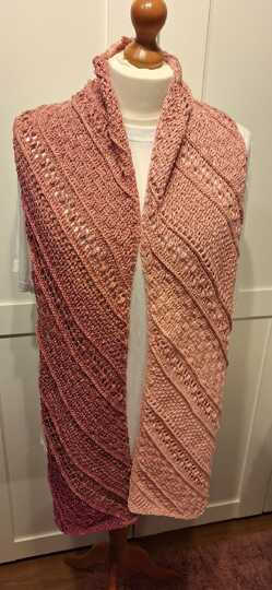 1000m Twister Farbverlaufsgarnvon hobbii mit Nadelstärke 3,5 ergaben einen tollen Schal der die Maße