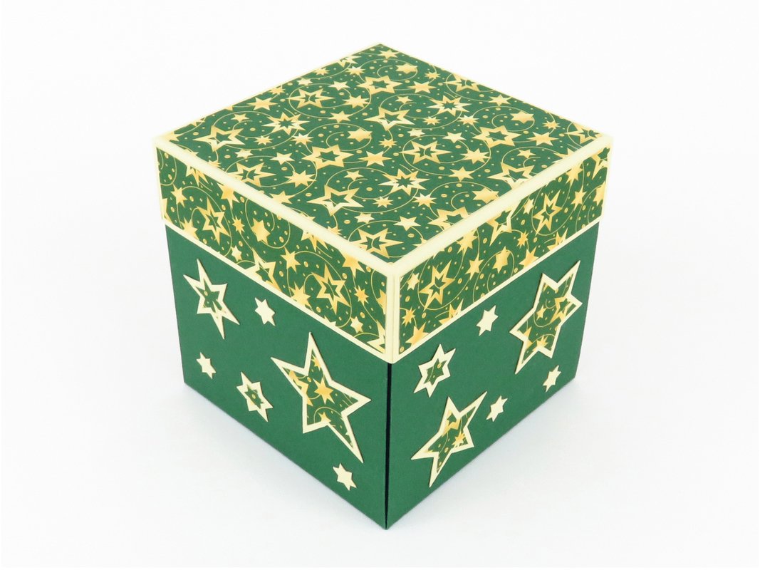 Zum Basteln dieser Box sollst du mit Schere, Cutter und Schneidelineal umgehen können und wissen, wie man Faltlinien einprägt und die Grundformen faltet. Auch sollst du bereits mit Klebstoff gearbeitet haben. Unter diesen Voraussetzungen wirst du diese Box ohne Probleme nacharbeiten können.