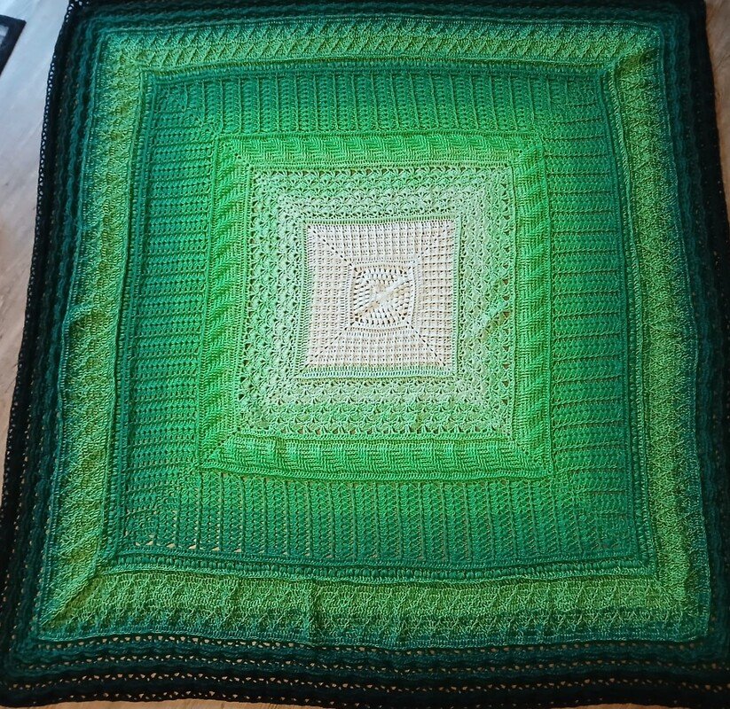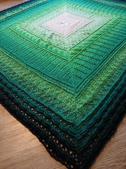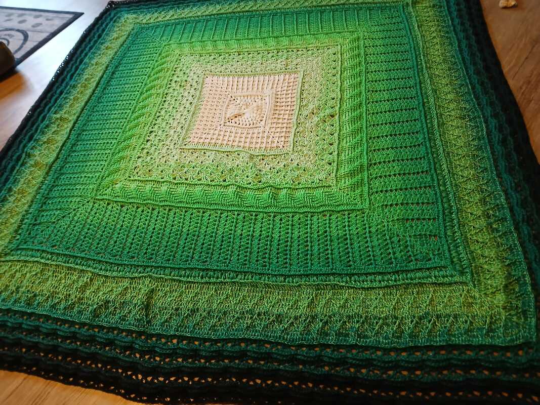 Ihr erhaltet hier die Anleitung zur Decke "KayPacha 2.0". Die Decke wird aus der Mitte in Runden gearbeitet. Sie ist auf einen Verbrauch von ca. 4000/4 ausgelegt, kann aber auch vergrößert und kleienr gearbeitet werden.