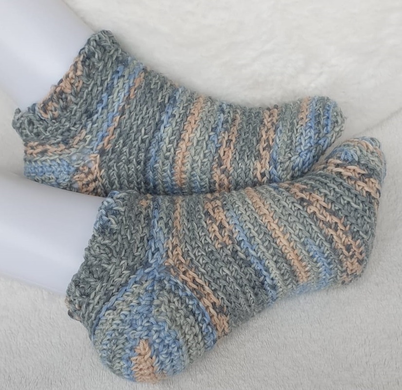 Mit dieser Häkelanleitung können diese Socken in allen Größen - von Neugeborenem bis Größe 48 - nachgearbeitet werden