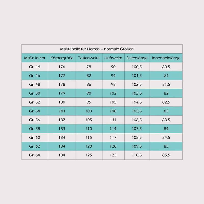 Im Schnittmuster enthalten sind die Herrengrößen 44 - 64 (normale Größen)