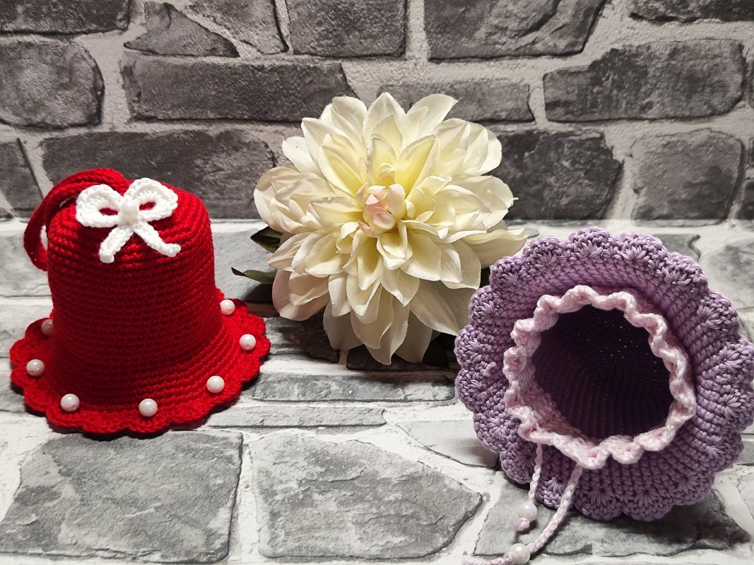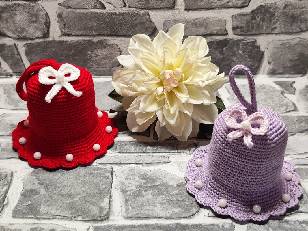 Die Glöckchen wurden mit Baumwollgarn (50g-125m) und einer 2,5 Nadel gehäkelt.