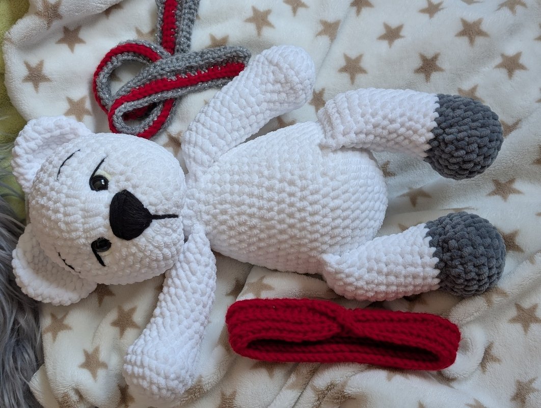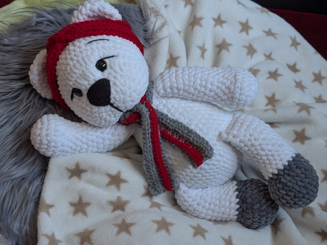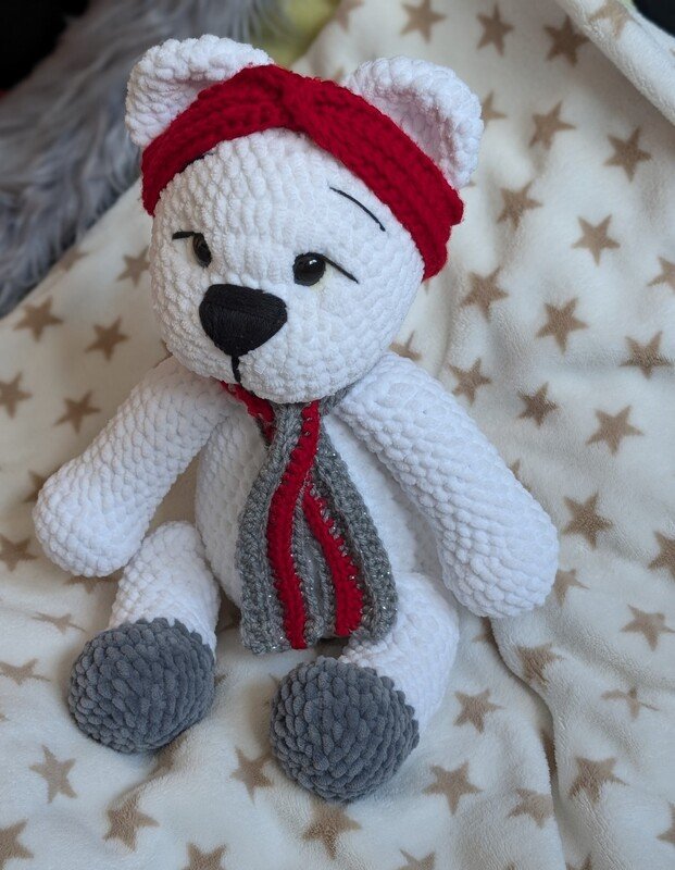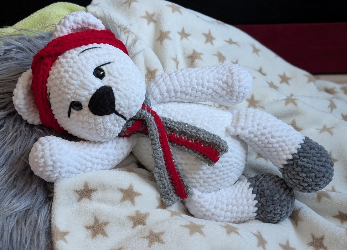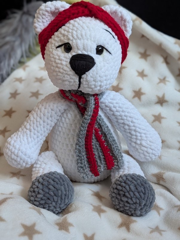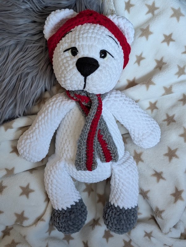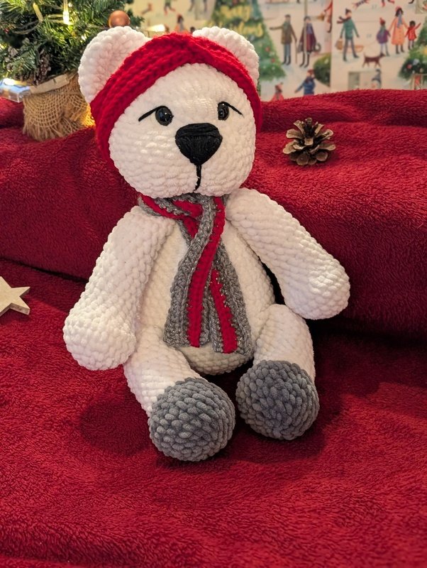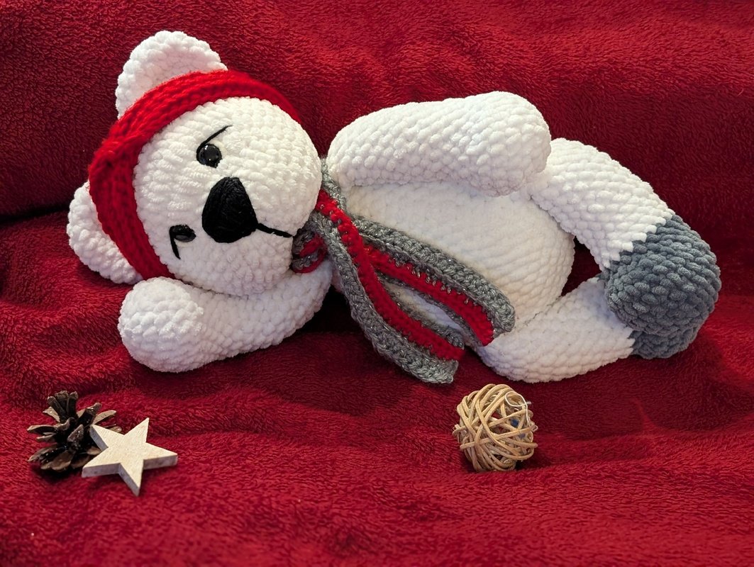 Mit Chenillegarn wird der Eisbär ca. 35cm