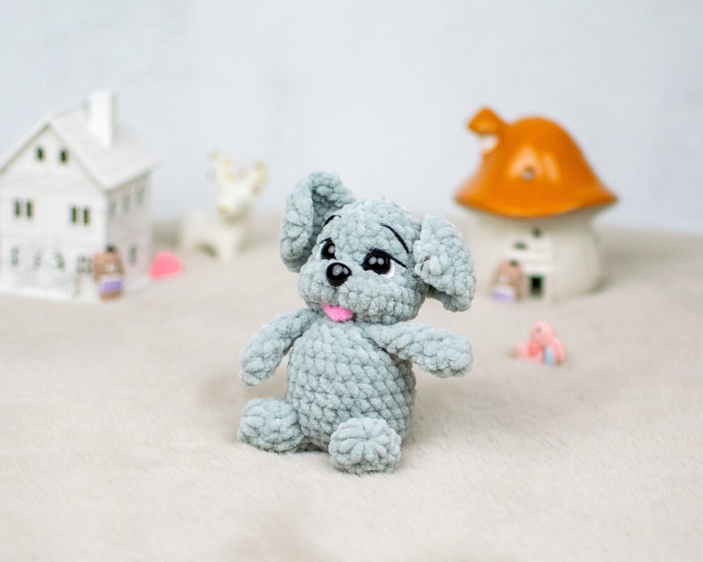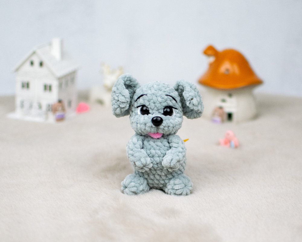 Mit dieser Häkelanleitung kannst du einen kleinen, weichen Welpen aus Chenillegarn häkeln.