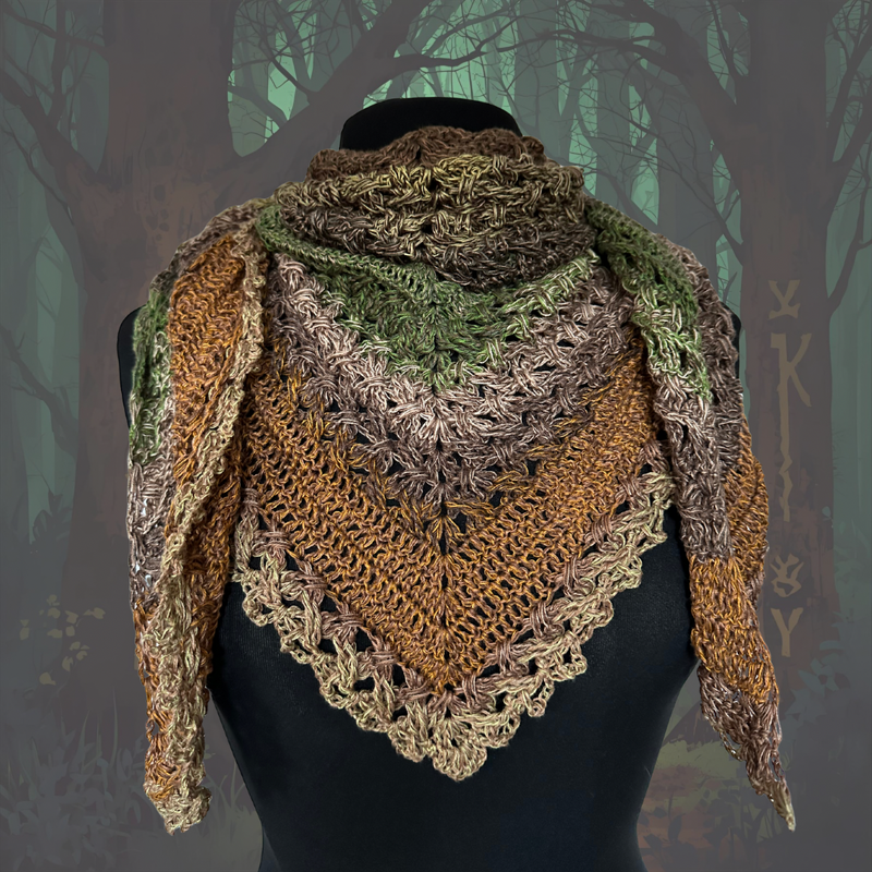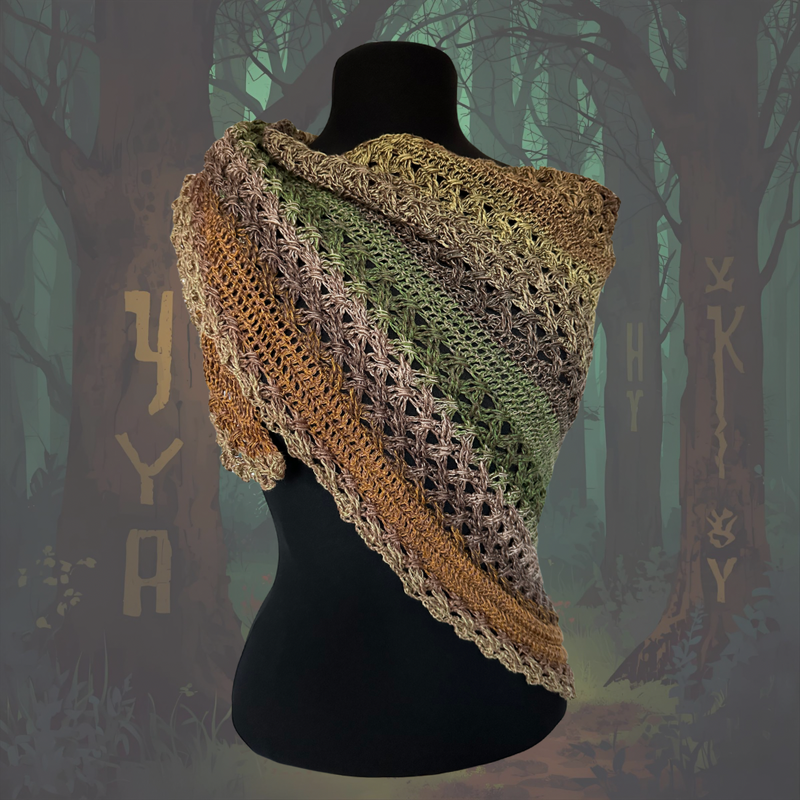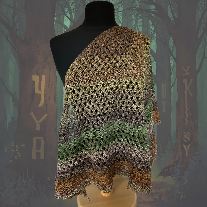 Runvald ist ein mystisch anmutendes Häkeltuch, inspiriert von alten Wäldern im hohen Norden und der ruhigen Kraft der Natur. Der Name setzt sich aus Rune und Wald zusammen - und genau diese Verbindung spiegelt sich im Design wider: erdige Naturtöne treffen auf ein ausdrucksstarkes Flechtmuster, das sich wie verwobene Äste über das Tuch legt.