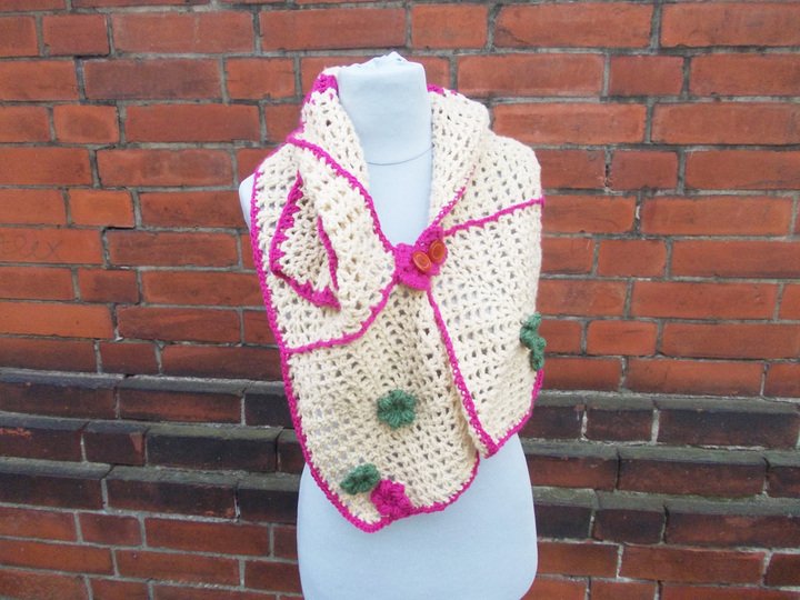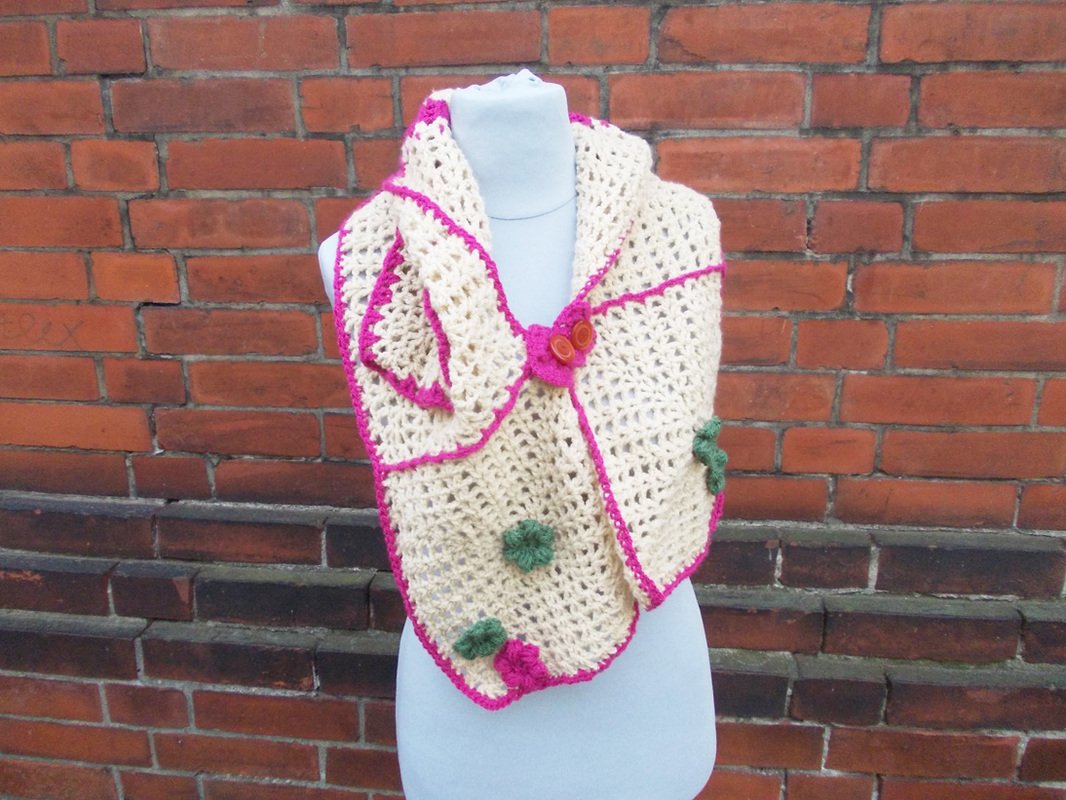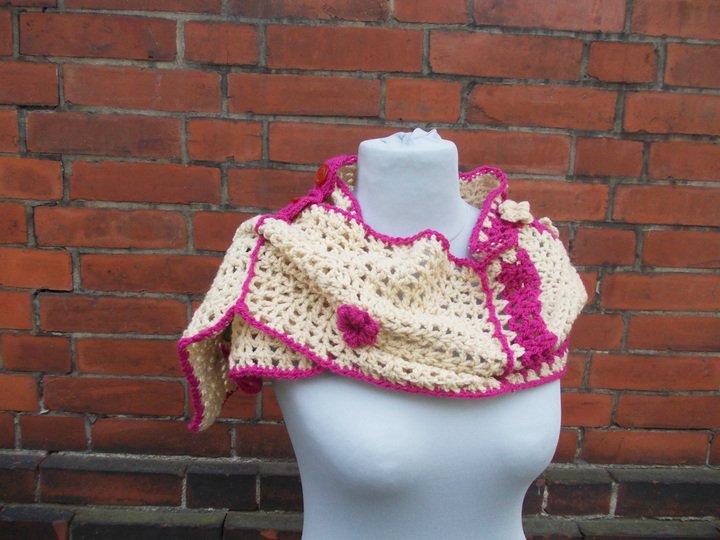 Die Tragevariaten für den Schal: als Schal, als Poncho, als Bolero-Jäckchen etc.