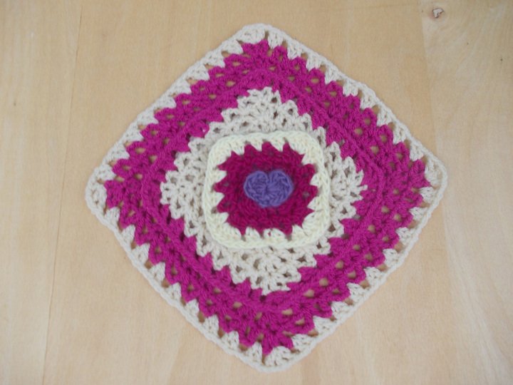 Es gibt so viele Muster für granny square, nun habe ich auch noch eines. Mit dieser Anleitung könnt Ihr Quadrate von winzig bis XXL häkeln. Ich bin gerade dabei, aus meinen vielen gesammelten Wollresten eine große Decke mit den Maße 2 m x 2 m aus nur einem Quadrat zu häkeln. Das macht unglaublich Spaß!!!! Jeden Tag ein neuer Knäuel, wird total bunt und es entspannt.