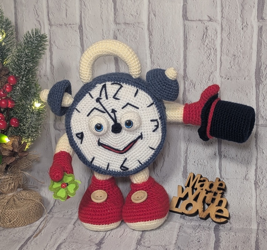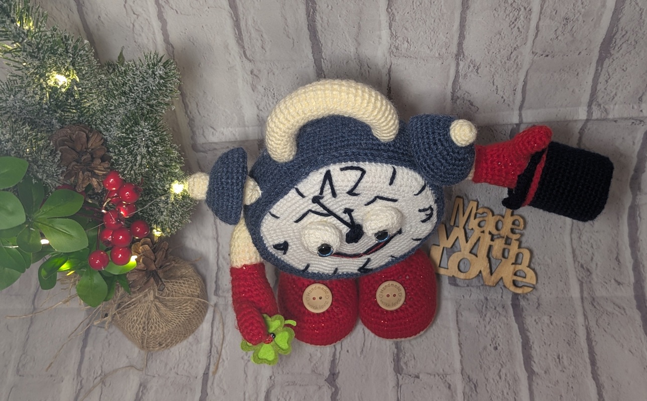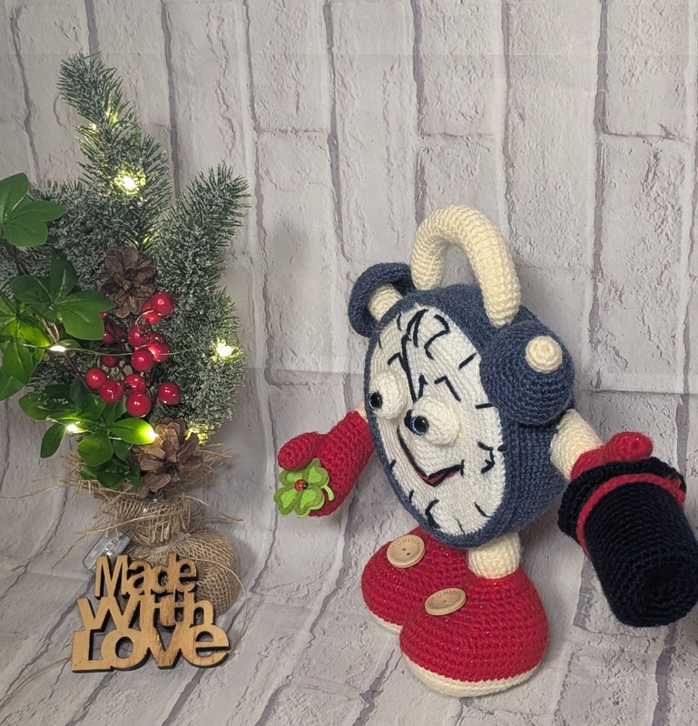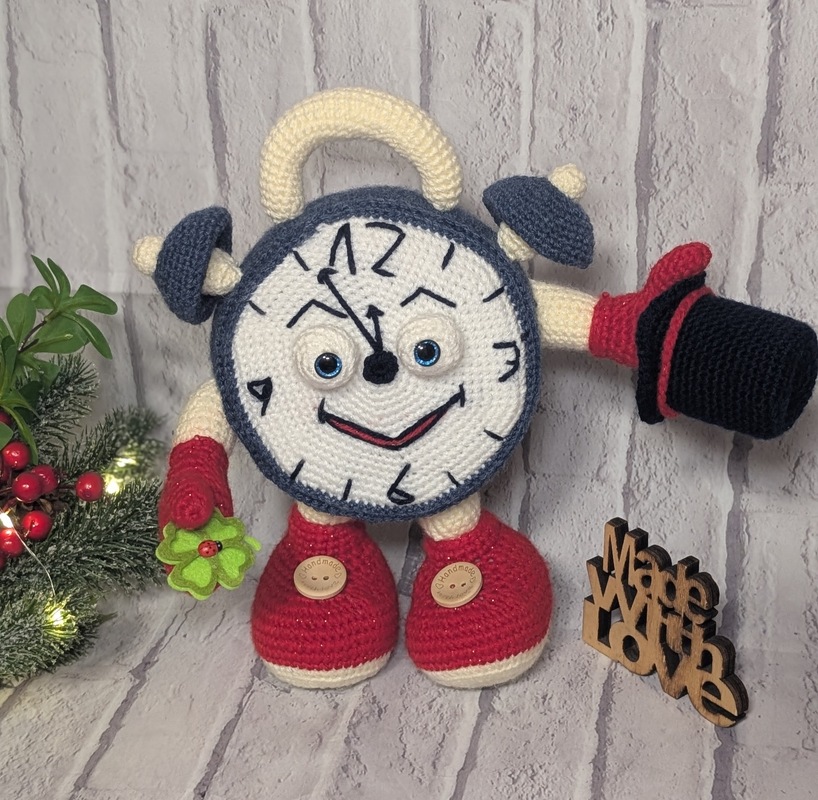 Der lustige Wecker Max ist eine detaillierte Häkelanleitung im PDF Format mit vielen Fotos und Erklärungen.
