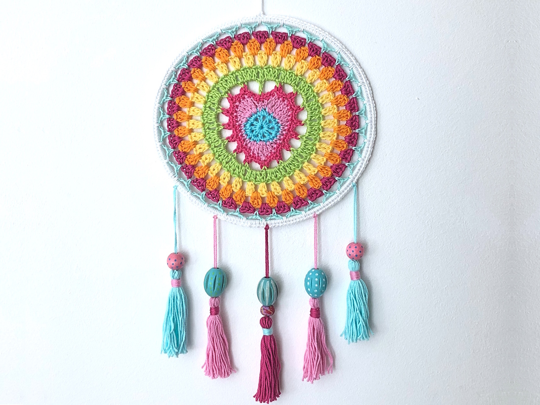 Kunterbunte Traumfänger selbst häkeln und gestalten - für gute Träume im Schlaf- und Kinderzimmer, aber auch einfach nur als tolle Dekoration für Küche, Wohnzimmer, Arbeitszimmer. Deiner Kreativität sind wie immer keine Grenzen gesetzt.