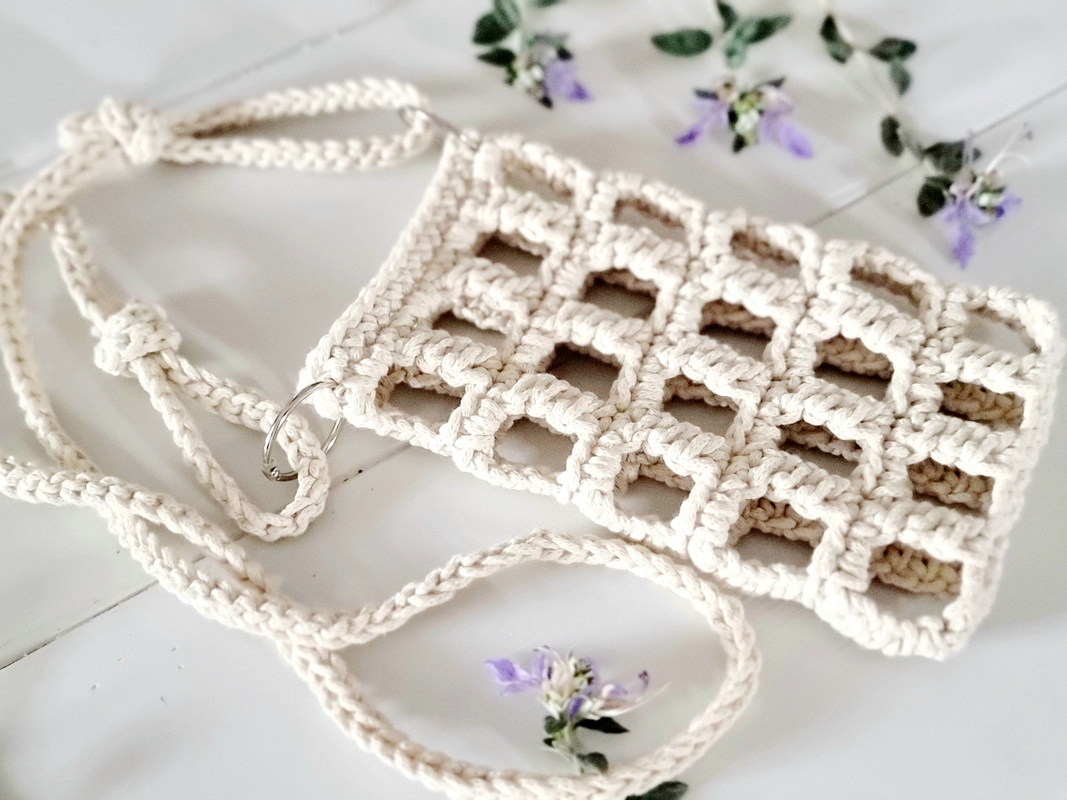 Eine charmante Mini-Umhängetasche für Ihr Handy. Leicht und dank der Schiebeknoten verstellbar – ideal als stilvolles Accessoire.