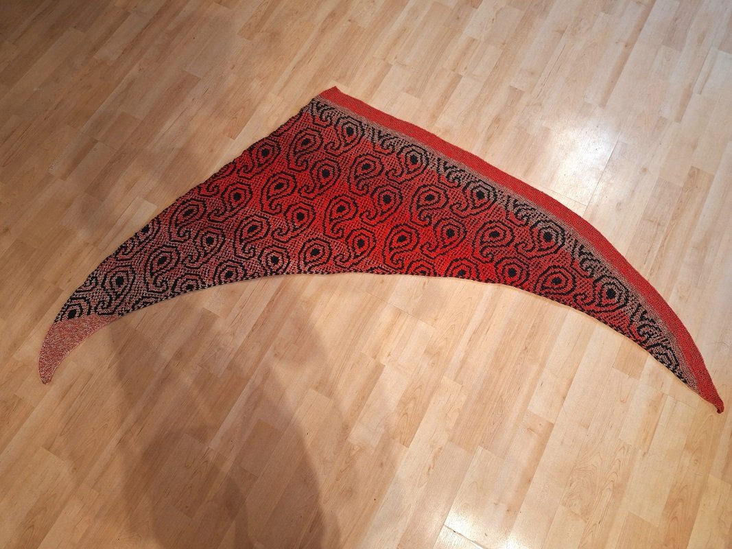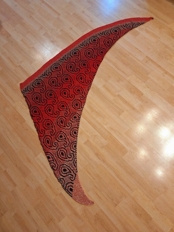 Es ist ein fast gleichschenkeliges eher flaches Dreieckstuch.