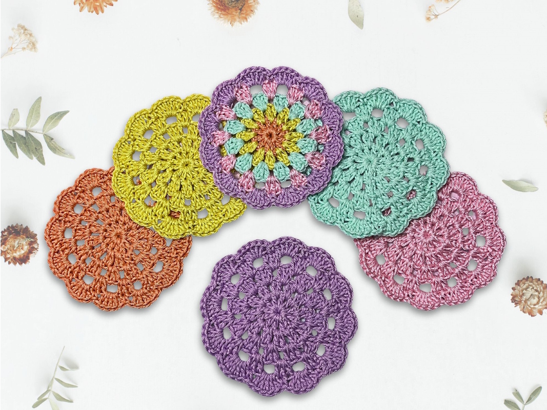 Mit dieser Anleitung häkelst du schnell und easy kleine runde Untersetzer mit dekorativer Kante – perfekt als Tischdeko, Glasuntersetzer, Mini-Deckchen oder kleines Mitbringsel. Ideal auch als selbstgemachte Geschenkidee, z. B. als Set, oder als Applikation für Kissen und Kleidung.