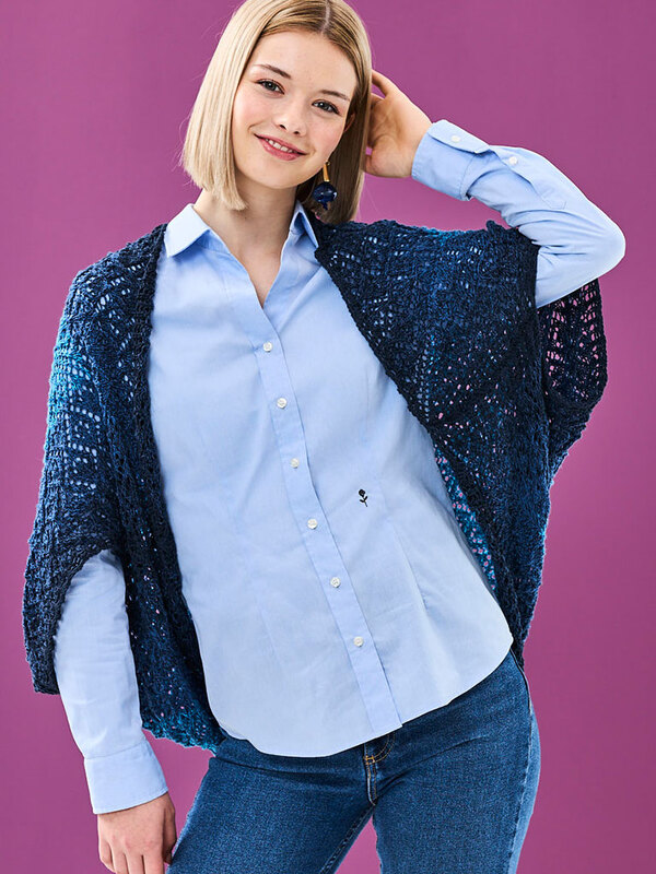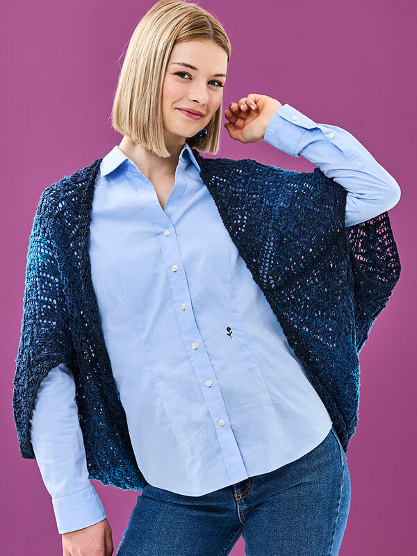 Strick dir diesen kuscheligen Seelenwärmer der aus der Mitte heraus gestrickt wird. Mit schönem Farbverlauf, super bequem und figurschmeichelnd für kühle Tage.