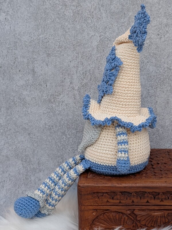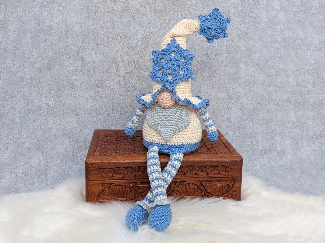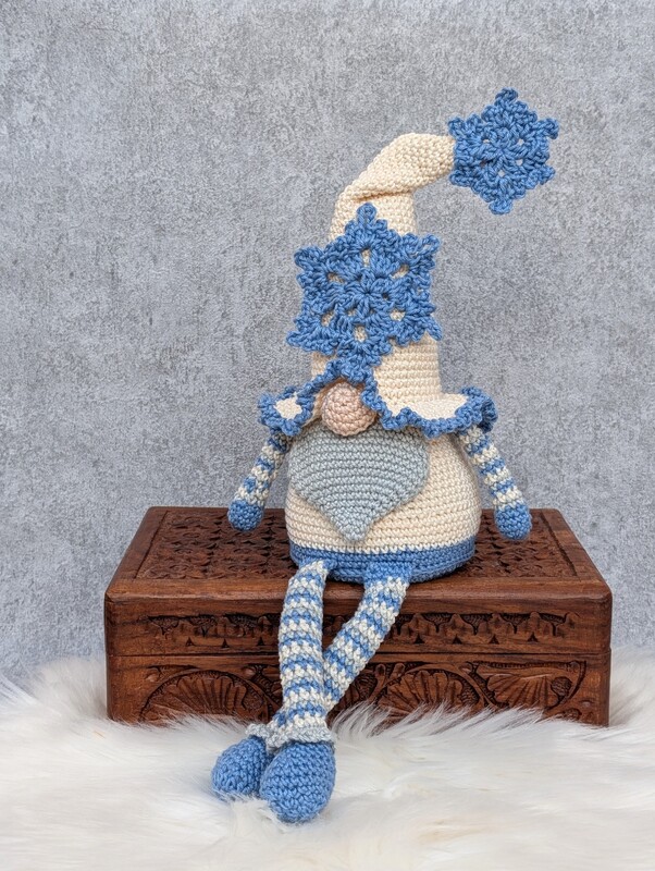 Mit diesem niedlichen Wichtel zauberst du dir eine gemütliche Winterstimmung in dein Zuhause. Die beiden Schneeflocken am Hut kannst du übrigens auch prima als Geschenkanhänger, Dekoration für Weihnachtskarten oder auch als Weihnachtsbaumschmuck verwenden.