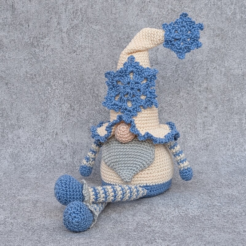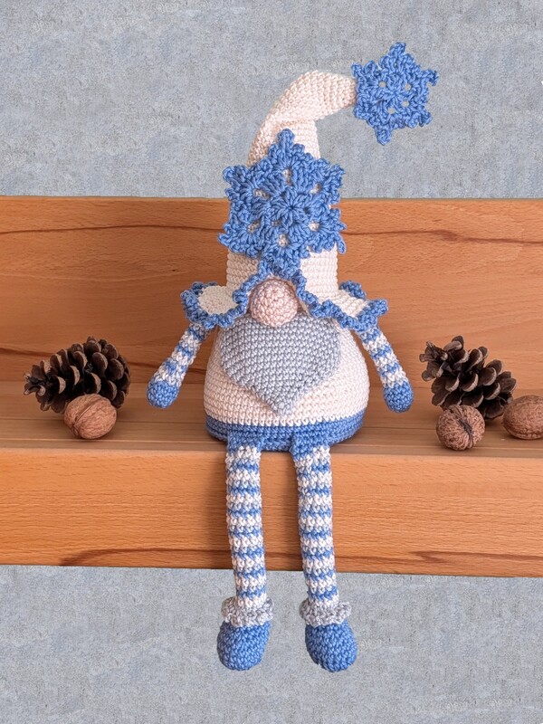 Die Anleitung umfasst 29 Seiten und enthält den Wichtel sowie Schneeflocken in zwei Größen. Wer die Grundkenntnisse gut beherrscht und schon das ein oder andere Amigurumi gehäkelt hat, sollte keine Schwierigkeiten bei der Umsetzung haben. Der Wichtel ist recht einfach. Die Schneeflocken sind etwas anspruchsvoller. Es ist aber alles ausführlich erklärt und es sind viele Schritt-für-Schritt Bilder enthalten.