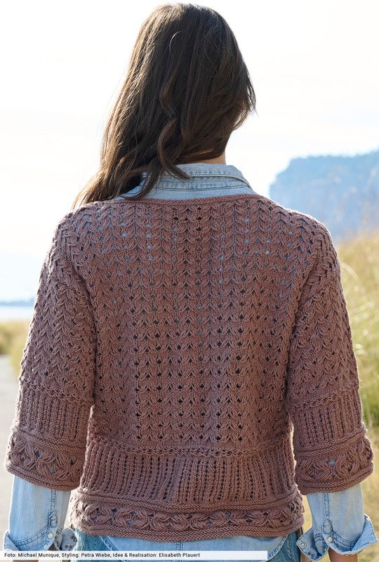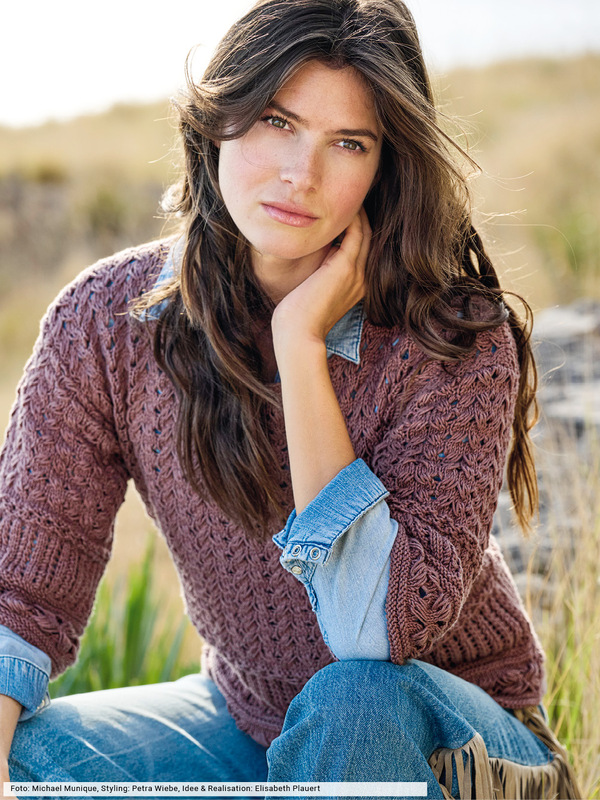 Hier bildet sanftes Nougatbraun die Basis für den natürlichen Charme und die entspannte Optik des Strickstücks. Die Muster sind nicht so ganz entspannt. Wir haben deshalb ganz bewusst auf Strickschriften verzichtet und jedes Muster genau beschrieben, so dass du Reihe für Reihe zum Erfolg kommst. Mit dem "griffigen" Baumwollgarn und dem geraden Schnitt entsteht ein Pulli der Extraklasse, der einerseits für Ruhe, andererseits für Spannung sorgt.