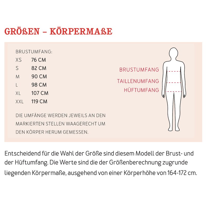 6 Doppelgrößen XS (32) bis XXL (50/52)