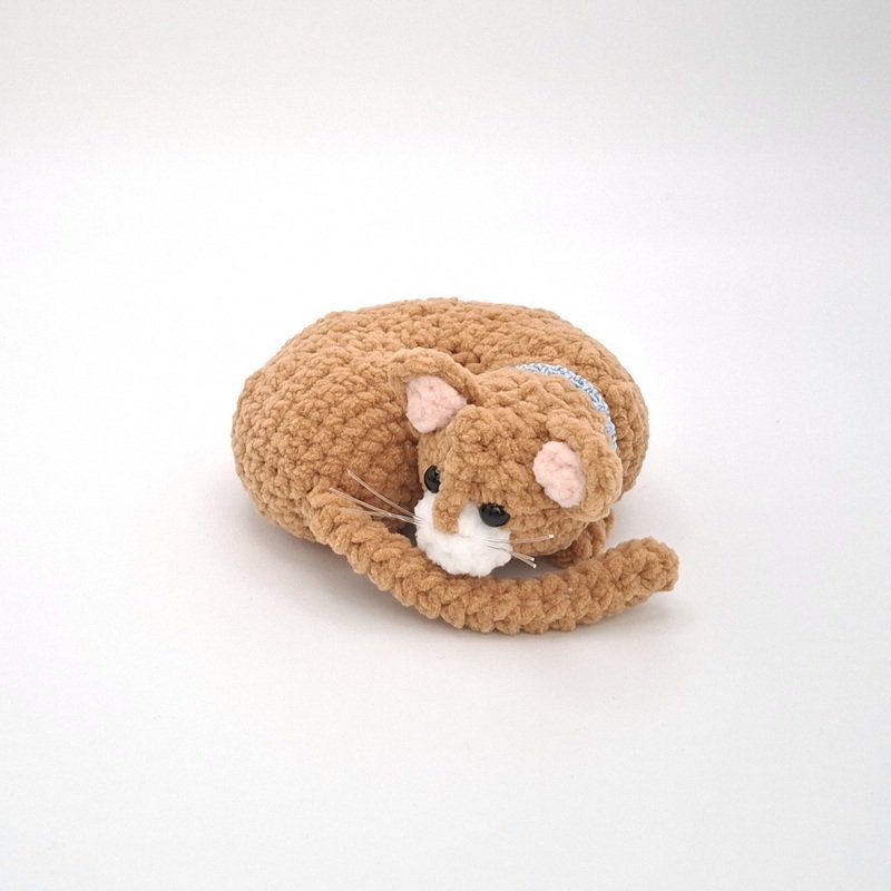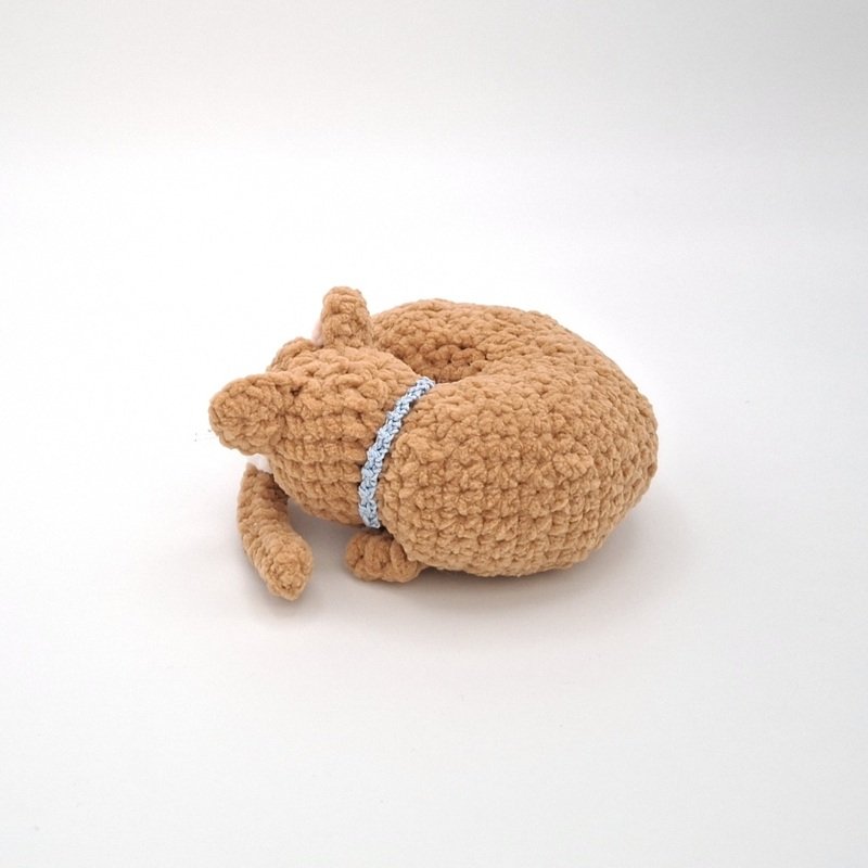 Das ist eine Häkelanleitung für eine eingeringelte Katze.