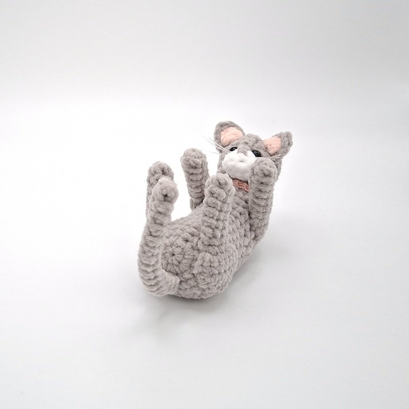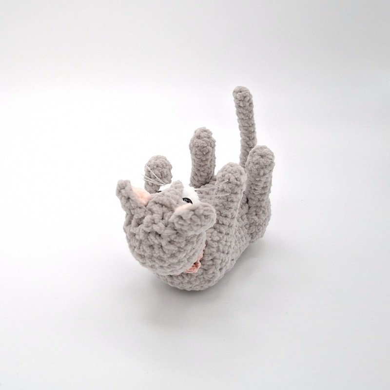 Das ist eine Häkelanleitung für eine spielende Katze.