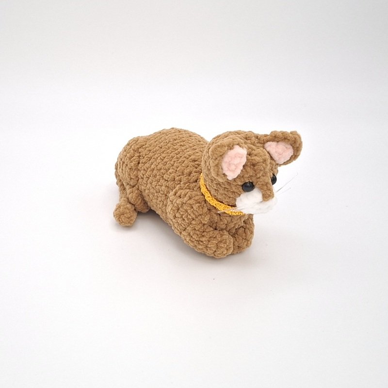 Das ist eine Häkelanleitung für eine Katze in Müffchen-Position.