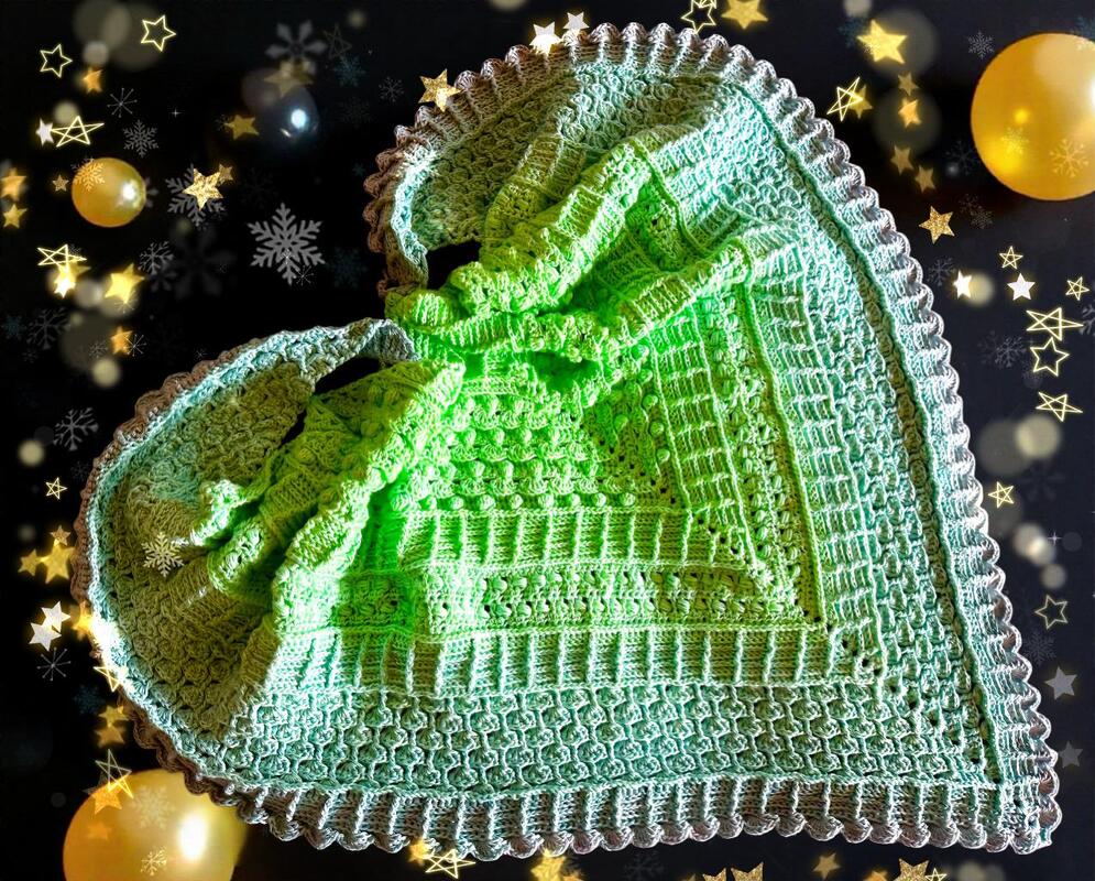 Das Tuch Dezembertraum ist ein kuscheliges Wintertuch, mit verschiedenen, ausgefallenen Mustern.