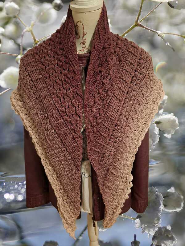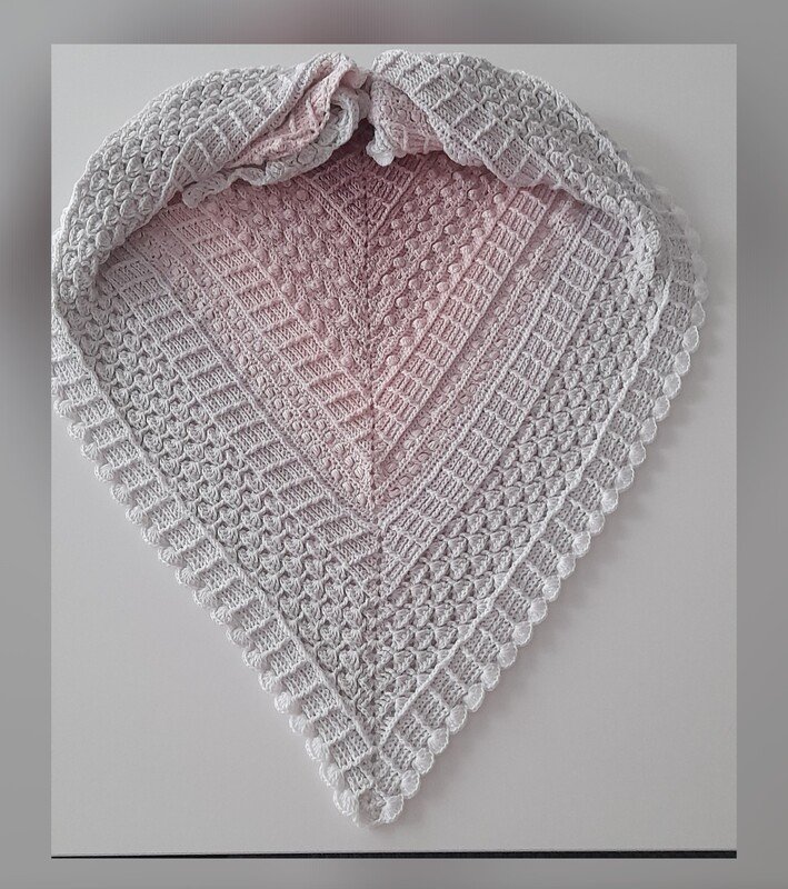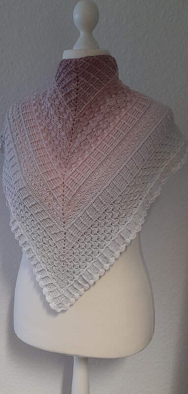 Das Tuch wurde aus einem 4-fädigen Farbverlaufbobbel "Schneerose" von Garninspiration and more, mit Nadelstärke 3,75 gehäkelt. Der durchschnittliche Verbrauch lag bei 1500m.