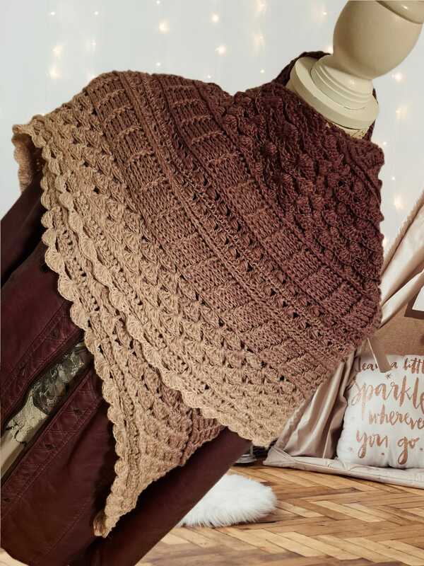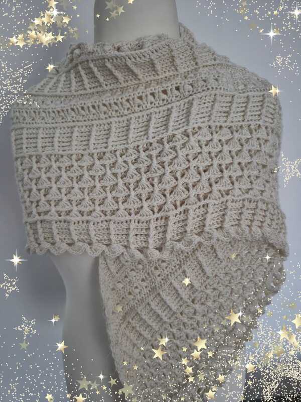 Die Größe des Tuchs ist stark von der Häkelweise abhängig. Das Tuch auf dem Titelbild hat eine Größe von 170cm x 65cm.