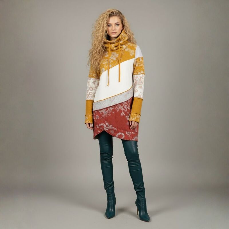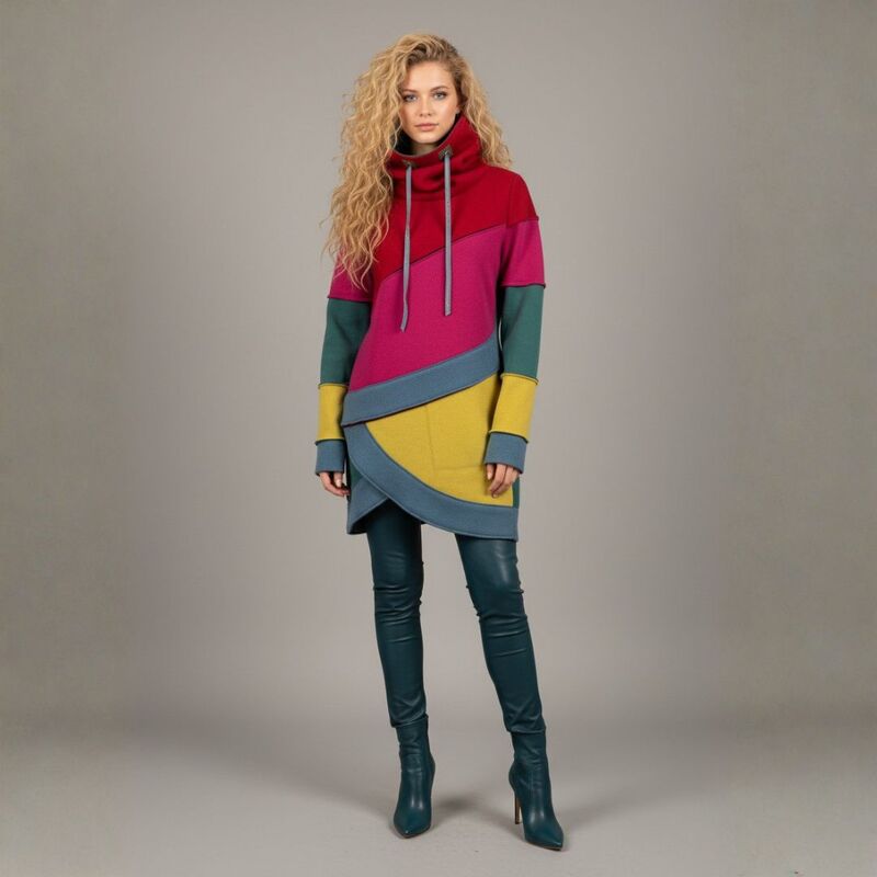 Mit dem Shirt Lani Schnittmuster nähst du dir im Handumdrehen einen stylische Pullover mit Stehkragen, der aussieht wie aufwendig gelayert – aber dank cleverem Schnitt super schnell genäht ist. Lani ist ideal für Frauen von 20–70, die wenig Zeit haben, aber Wert auf moderne, besondere Designs legen. Der Schnitt ist speziell dafür gedacht, deine Stoffreste in Szene zu setzen: asymmetrische Vorderteile, Blenden im „Used-Look“ und optionale Patchwork-Ärmel machen jedes Teil zu einem Unikat.