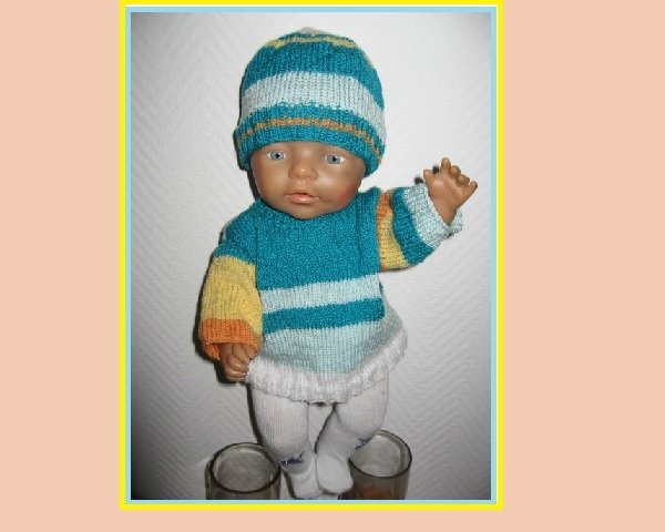 Auch bei unseren Puppen kommt der Frühling. Dieser Pullover und die Mütze sind mit dünnem Garn gestrickt.
