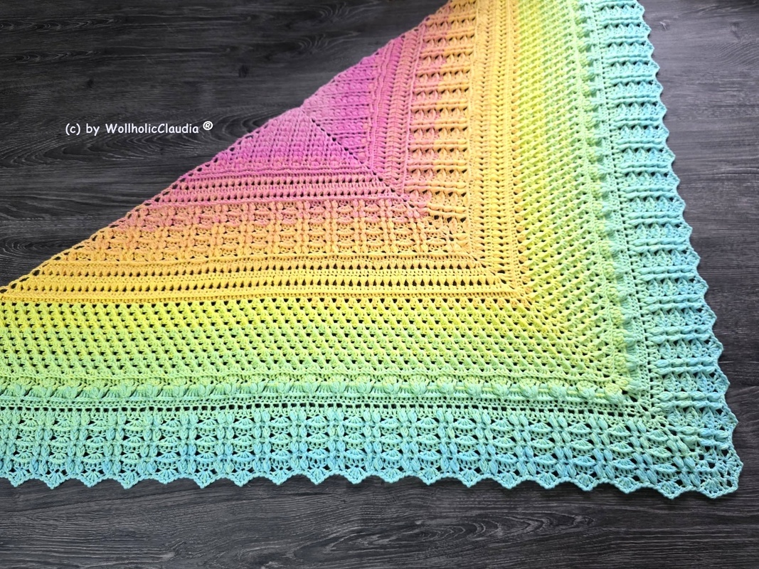 Die Häkelanleitung für das Dreickstuch besteht aus tollen, abwechslungsreichen Mustern und ist auf insgesamt 7 Teile aufgeteilt, wobei das letzte Muster noch beliebig erweitert werden kann.