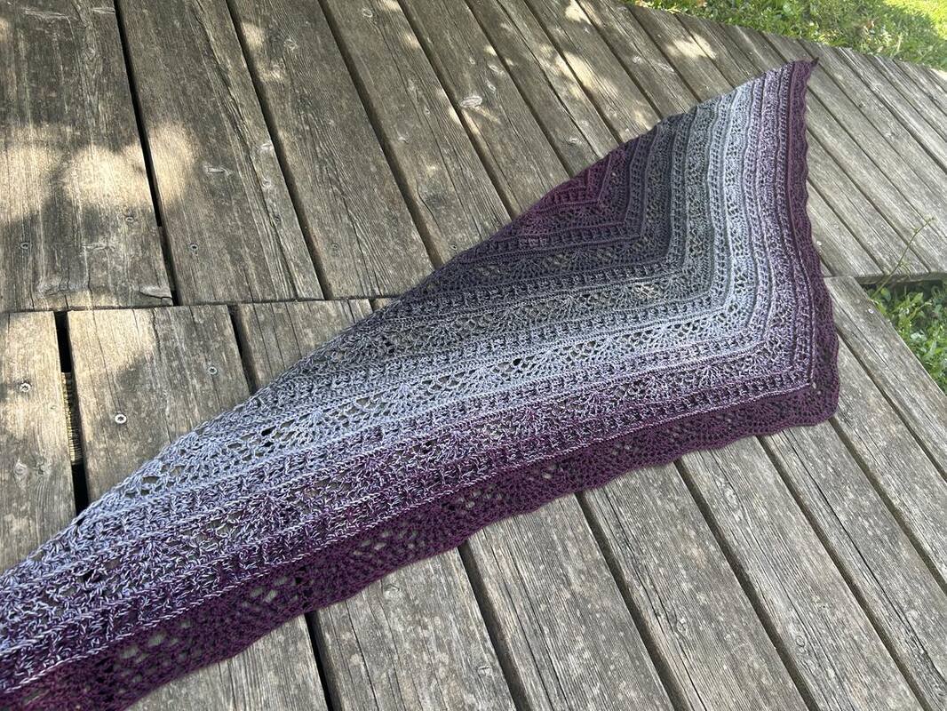 „Bryelle BE“ ist ein außergewöhnlich harmonisches Häkeltuch, das durch seinen spiegelgleichen Aufbau besticht. Von einem klar definierten Anfang wird bis zur Mitte gehäkelt und anschließend das Muster exakt gespiegelt wieder zurück gearbeitet. So entsteht ein elegantes, ausgewogenes Gesamtbild, das Farbverlaufsgarne besonders wirkungsvoll in Szene setzt.