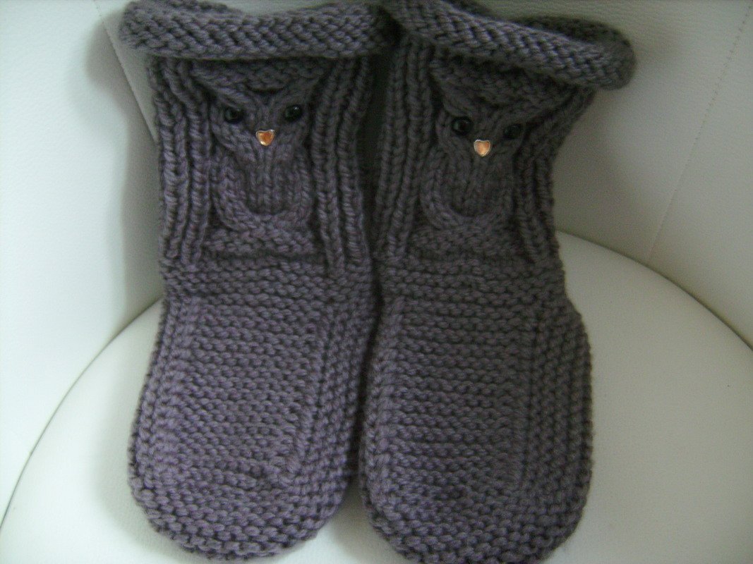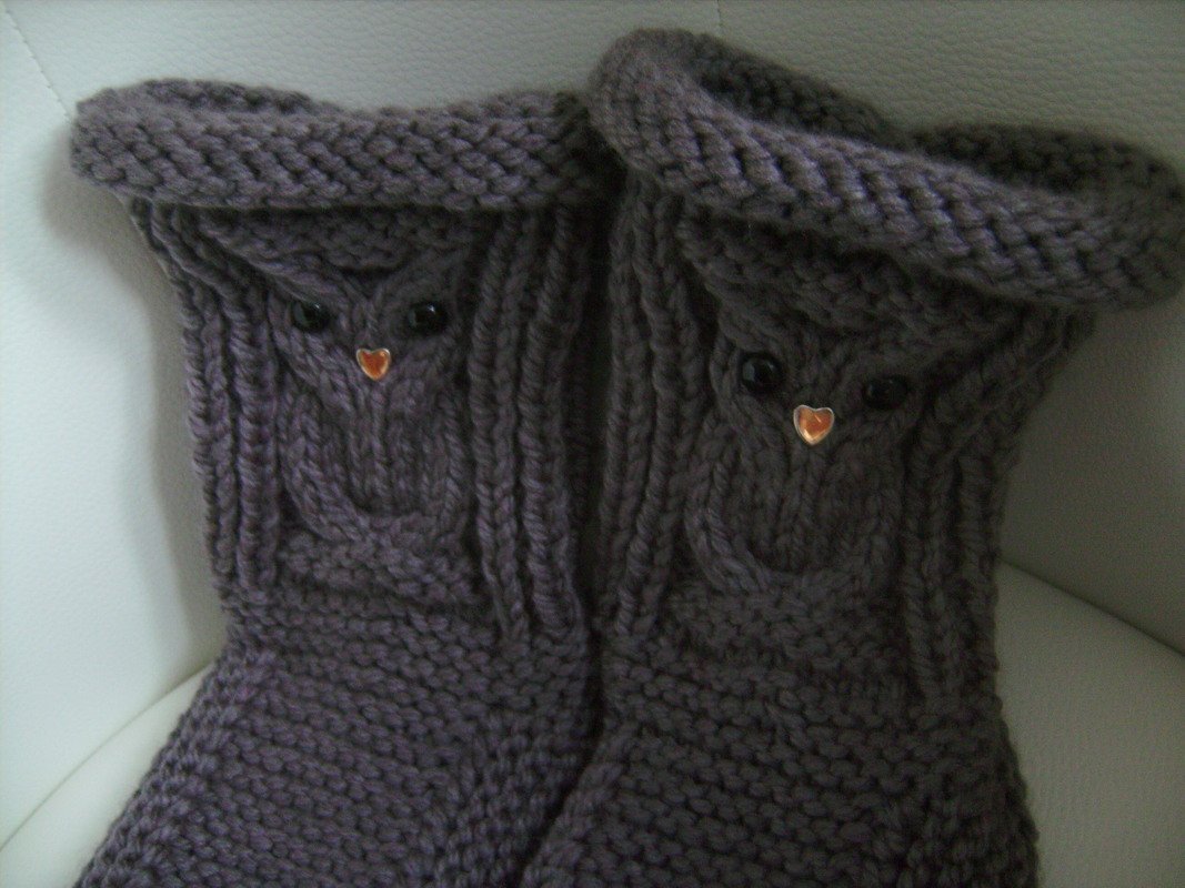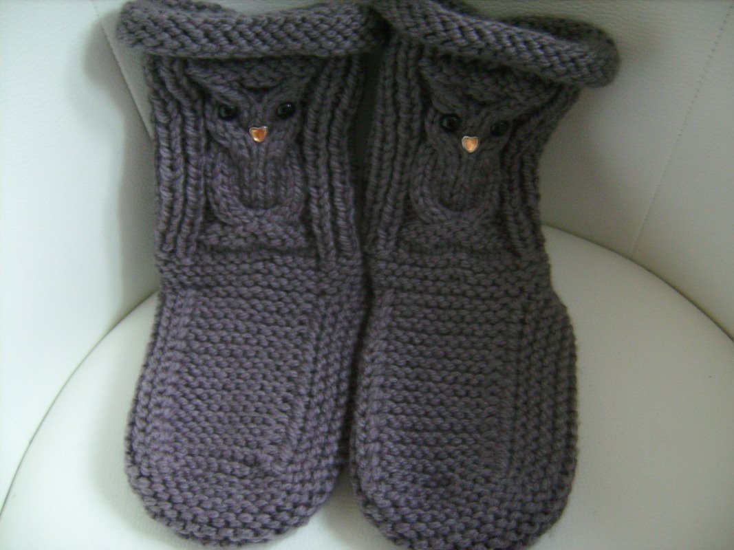Strick Dir Deine eigenen Eulen-Hausschuhe, Sofasocken und mach es Dir gemütlich.