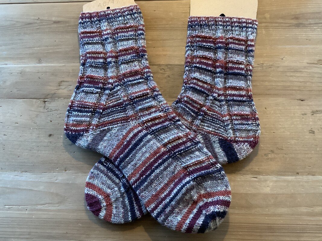 Beide Mustersocken sind in Größe 46 gearbeitet