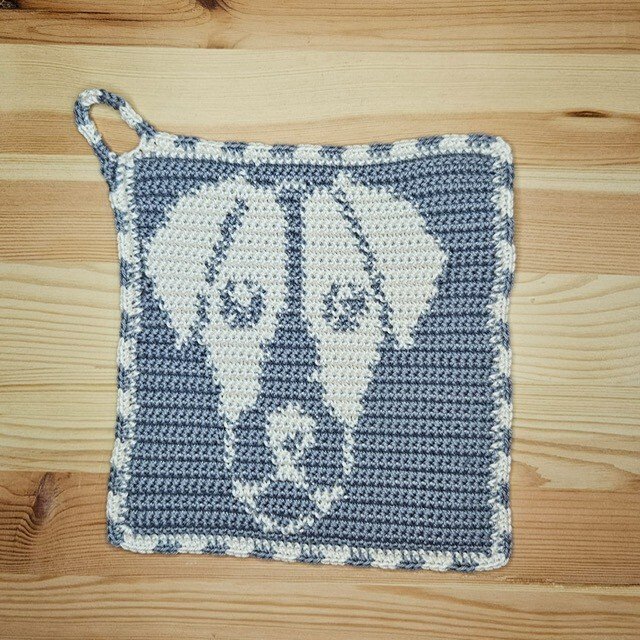 Mit der von mir verwendeten Wolle hat der Topflappen eine Größe von ca 20cm x 20cm