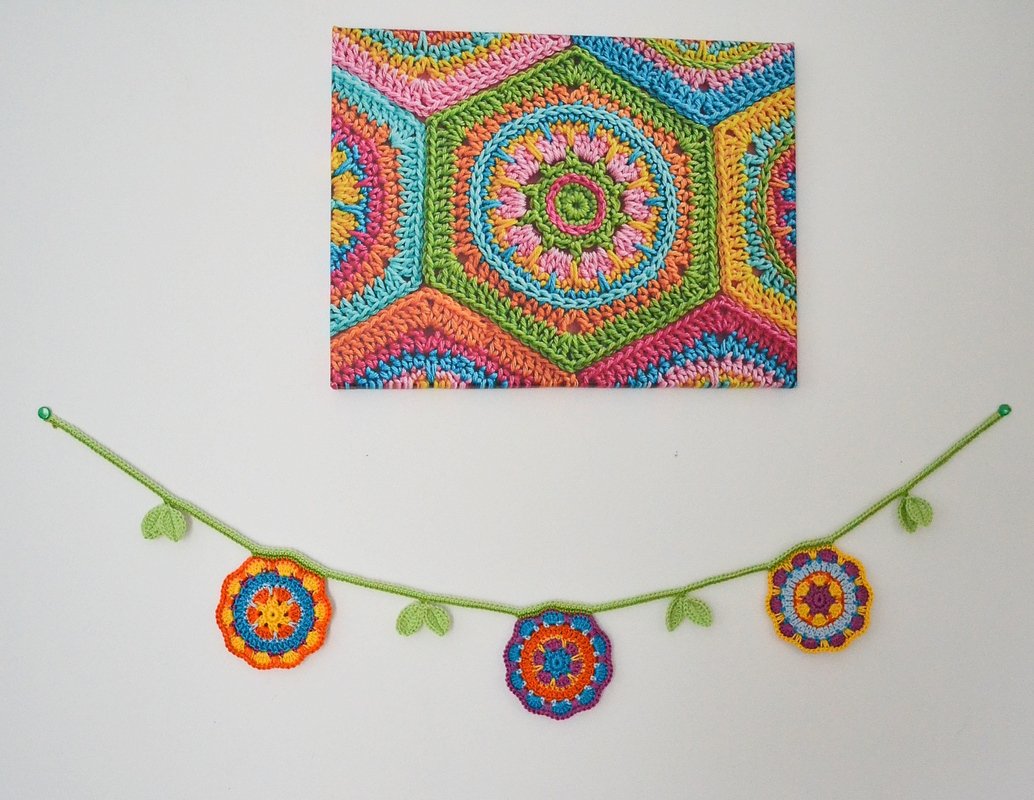Häkelanleitung für bunte Blumengirlande, Frühling Dekoration, Gartendekoration Blumengirlande, PDF