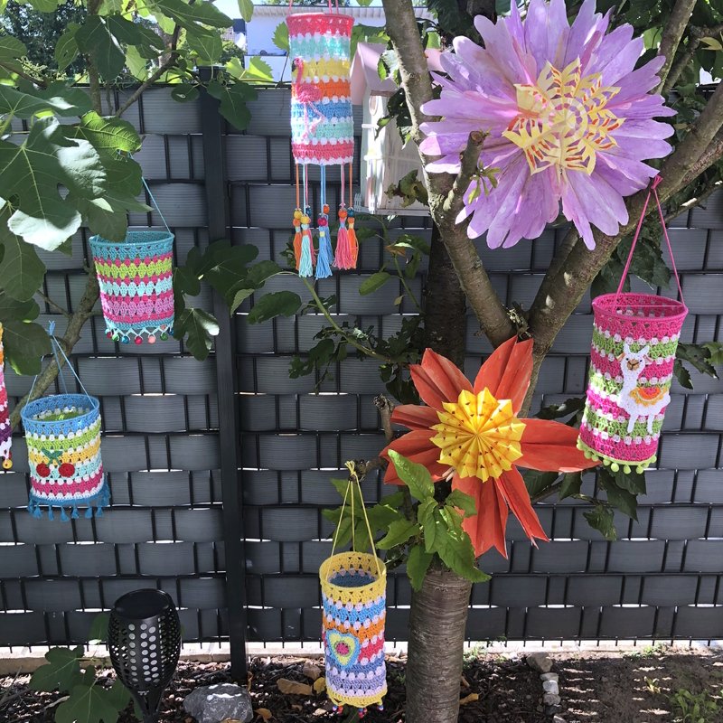 Häkelanleitung Bunte Laternen, Das Original seit 2017, Lampions in 4 Größen, inkl. Alpaka Lama Applikation, Häkellampe Sommerdeko, PDF