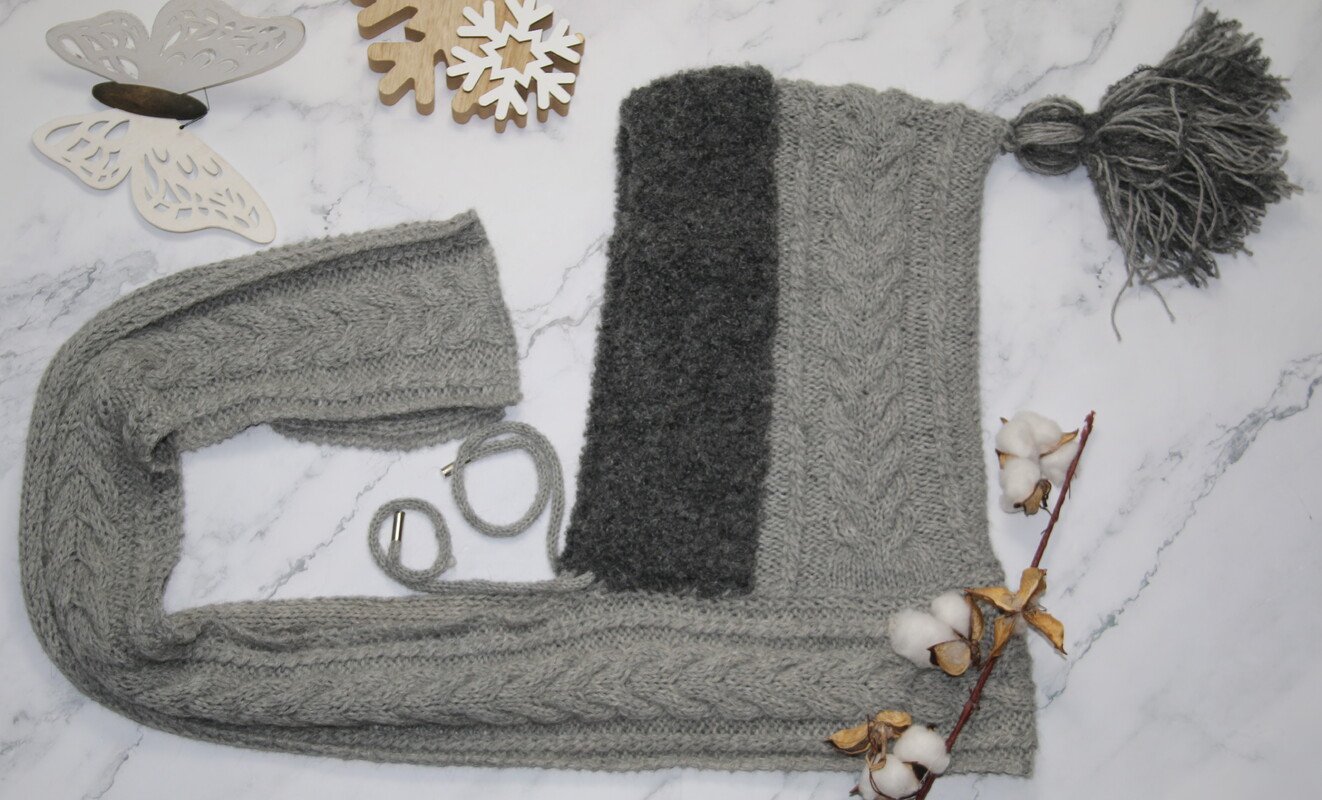 Der handgestrickter Kapuzenschal aus Alpakawolle vereint die funktionalen Vorteile einer "Götterfaser" mit der Qualität traditioneller Handarbeit. Der Kapuzenschal ersetzt Mütze und Schal gleichzeitig. Er schützt den Nacken- und Kopfbereich lückenlos vor Wind. Die Zugschnüre am Kapuzenschal dienen dazu, die Öffnung der Kapuze enger zu ziehen, um besser vor Wind und Kälte zu schützen. Die Zugschnüre ermöglichen, die Kapuze individuell anzupassen und verhindern, dass sie verrutscht oder der Wind hineinweht. Handarbeiten sind individuell gestaltet und machen diesen Kapuzenschal zu einem langlebigen Einzelstück